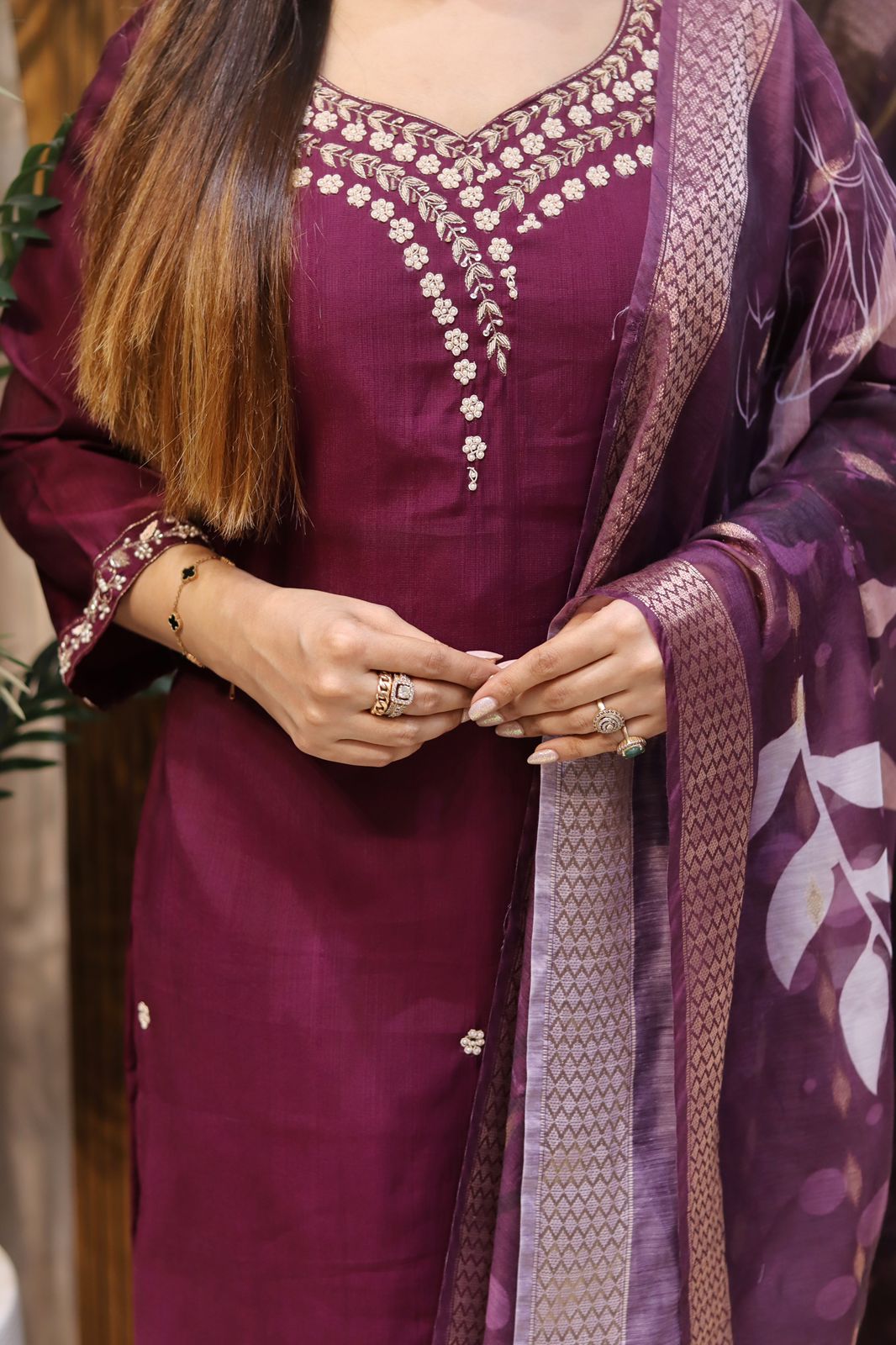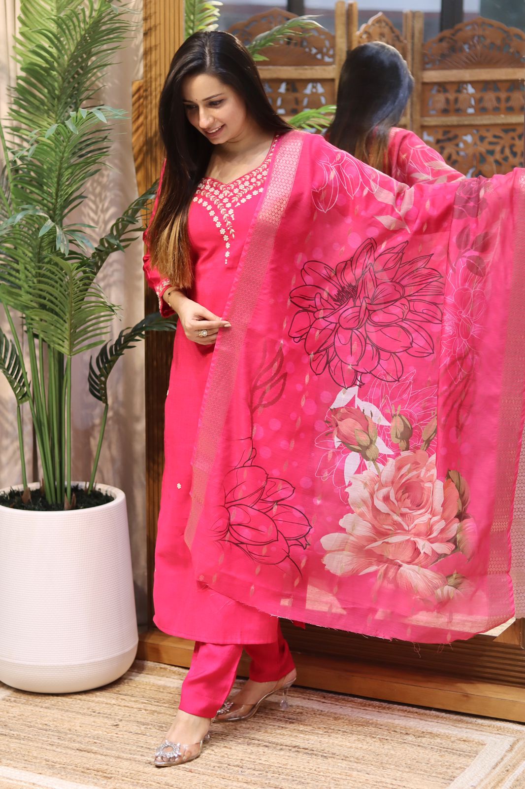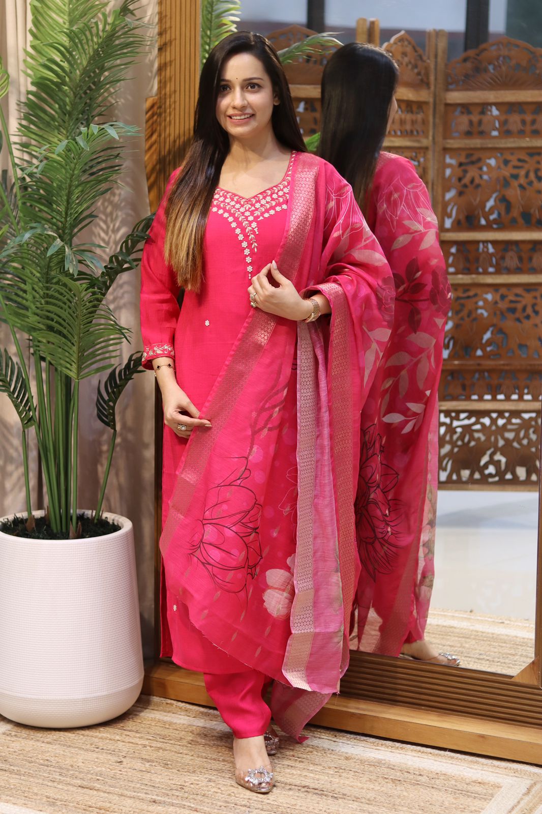Dupatta: Premium organza with elegant floral print